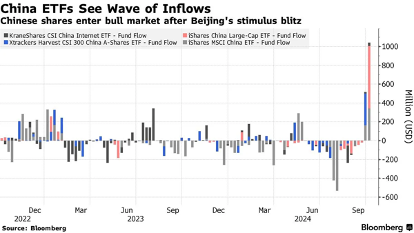 值得注意的是,在中國股市猛漲之際,跟蹤中國大公司表現的一隻新ETF“中國龍” 於10月3日登陸美股,也備受市場關注。這隻ETF成分股目前包括 $騰訊控股 (00700.HK)$ 、 $拼多多 (PDD.US)$ 、 $阿裡巴巴-W (09988.HK)$ 、 $美團-W (03690.HK)$ 、 $比亞迪股份 (01211.HK)$ 、 $小米集團-W (01810.HK)$ 、 $京東 (JD.US)$ 、 $百度 (BIDU.US)$ 和 $網易 (NTES.US)$ 。